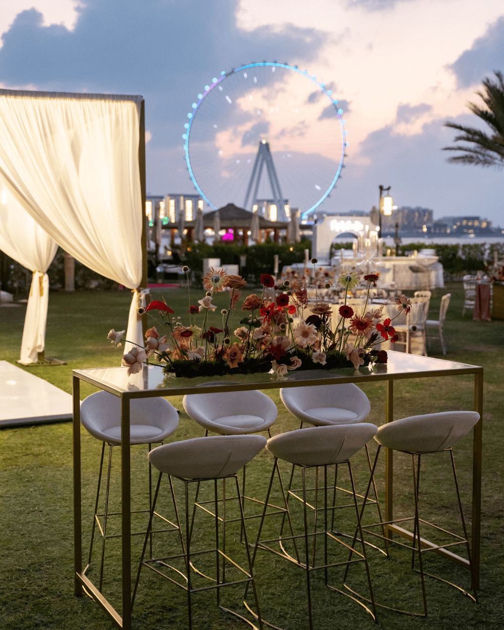 An exceptional event for the Dubai Global Wedding Excellence retreat in 2023 brought together planners from around the world to Dubai for a few days. It culminated in an evening of world class wedding planners enjoying an iconic dinner from the lawns of the Ritz Carlton JBR lawn.